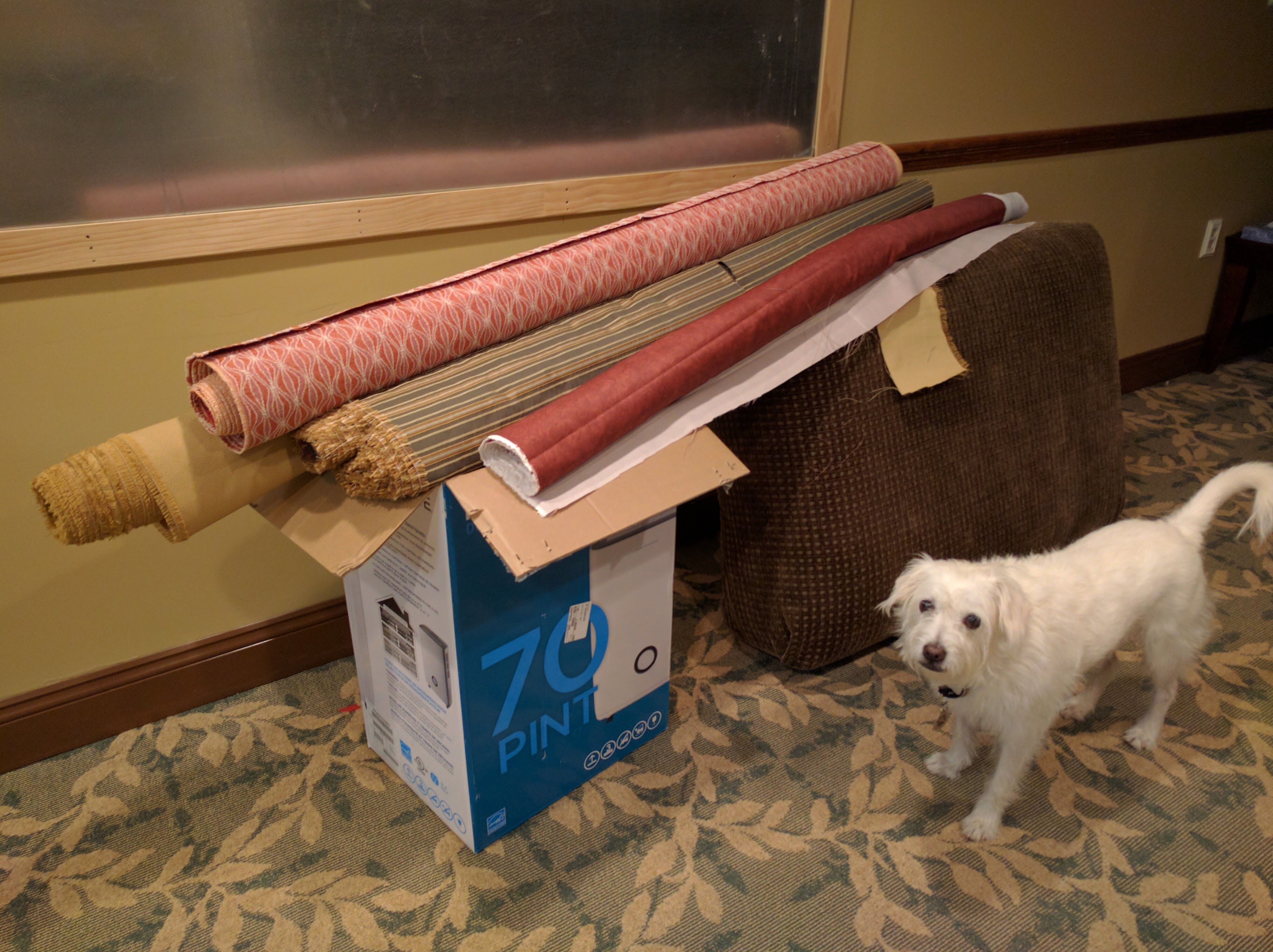 img_20160918_121117 Previous Next Published September 19, 2016 at 4000 × 2992 in Making of the First Bags Four of the cuts rolled. And there’s DJ, who is always right by my side when I’m sewing, always hoping whatever I’m working on is a toy for him.