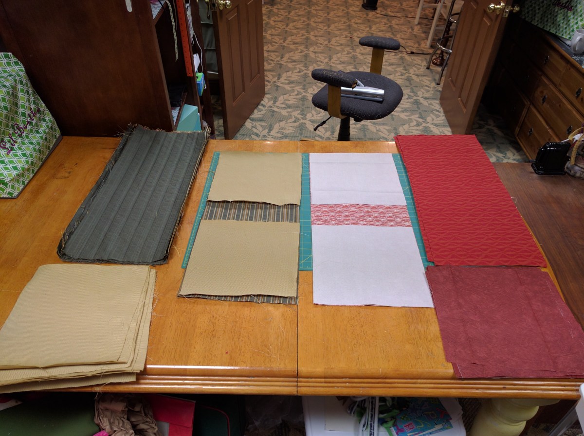 img_20160918_133727 Previous Next Published September 19, 2016 at 4000 × 2992 in Making of the First Bags Fast Forward — Outside fabric and linings cut for first batch.