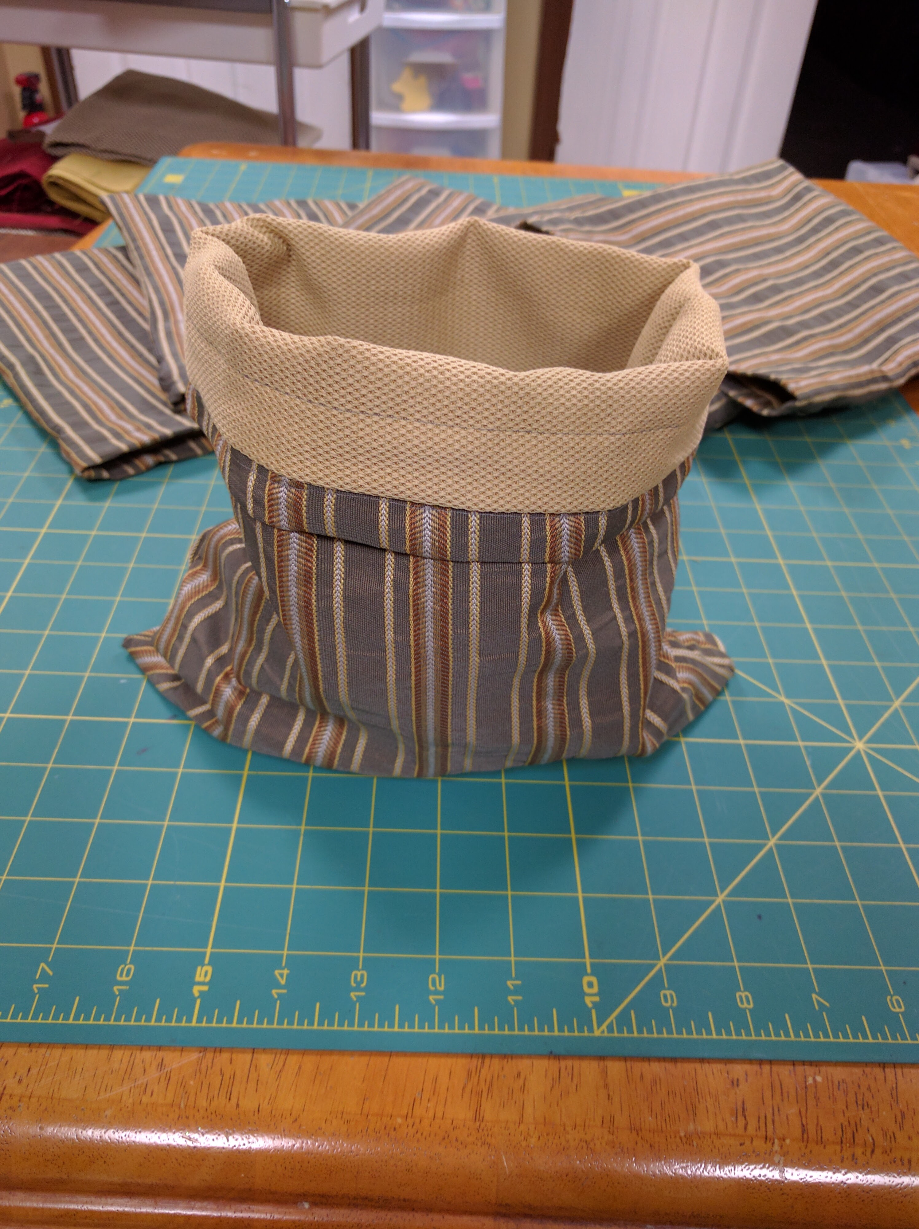 img_20160918_181153 Previous Next Published September 19, 2016 at 2992 × 4000 in Making of the First Bags Fold over the top, for stability, so the bag can stand up on it’s own.