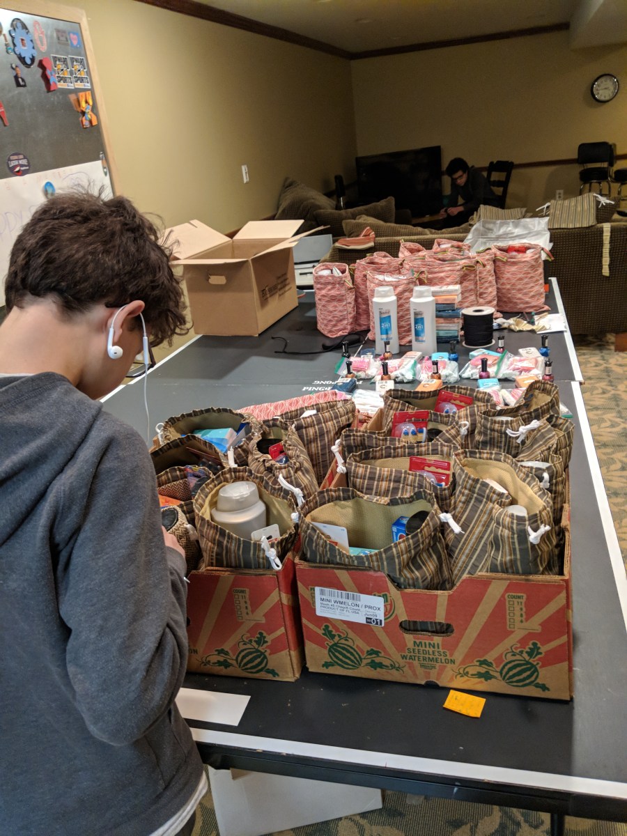 Maker:S,Date:2017-9-26,Ver:6,Lens:Kan03,Act:Lar02,E-Y Previous Next Published February 19, 2018 at 3024 × 4032 in Official Final Count: 55 Refresh Bags My boys taking a break from figuring out the inventory of toiletry items still needed.
