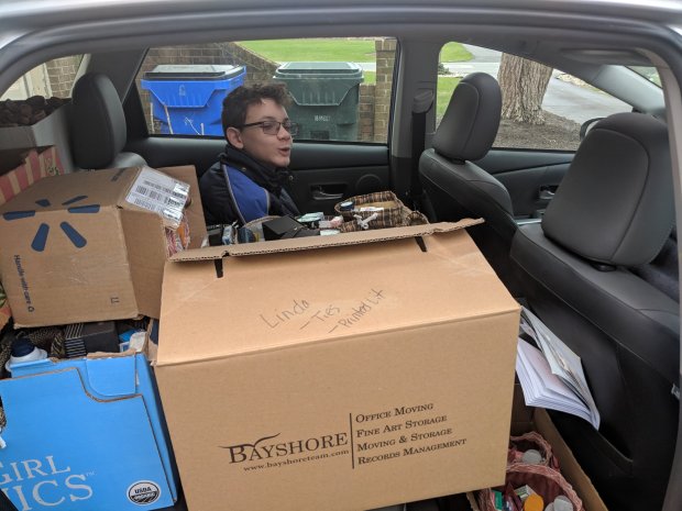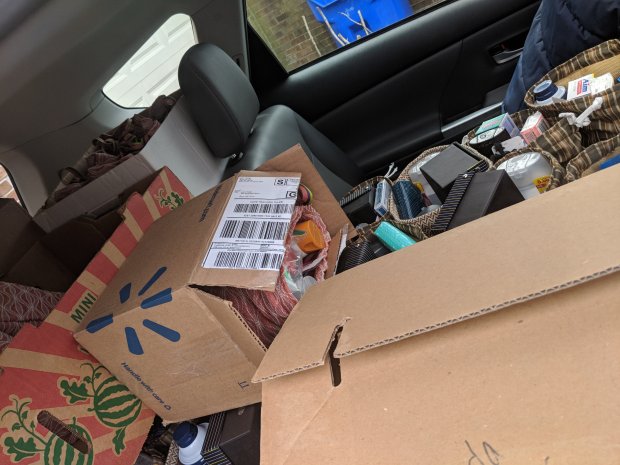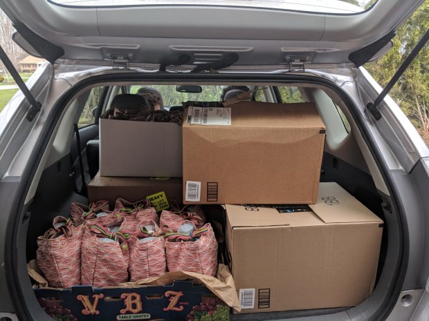 I neglected to take pictures of almost everything. I took a few shots of the car filled to the brim with the filled bags just before we delivered the 55 bags.
