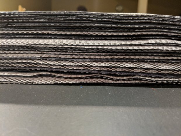 We’ve tested a double-sided poly stretch fabric that seems to have special powers. When made into a drawstring backpack it keeps stretching and stretching to fit whatever you need to carry in it. We carried a bulky blanket, a winter coat, travel neck pillow, headphones and charger in the bag with no issues.