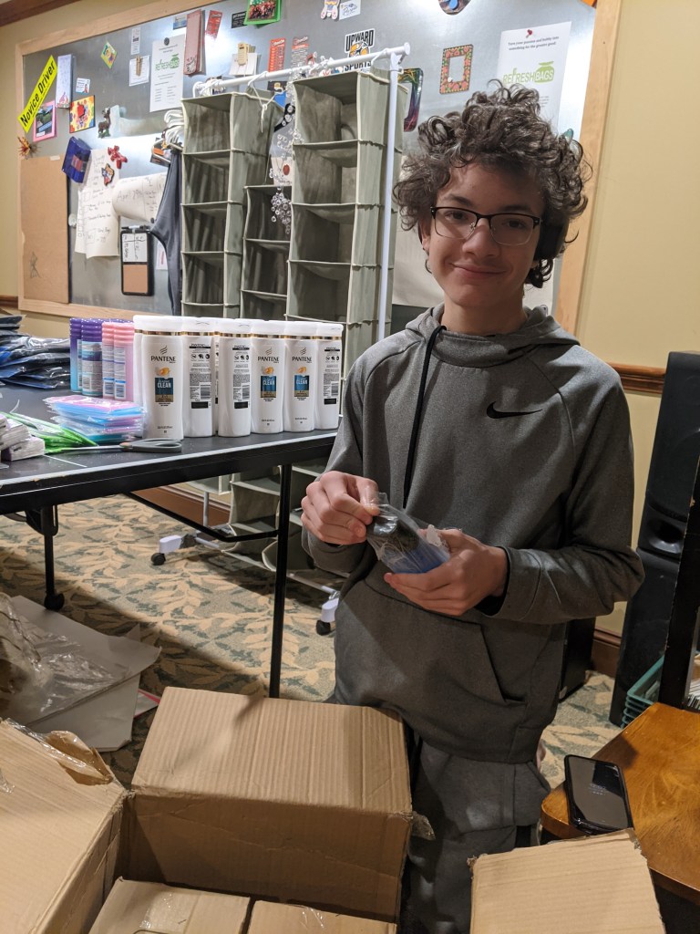 In total, we’ll fill 66 Refresh Bags: 33 for teen boys and 33 for teen girls. A few bags were lost along this journey.